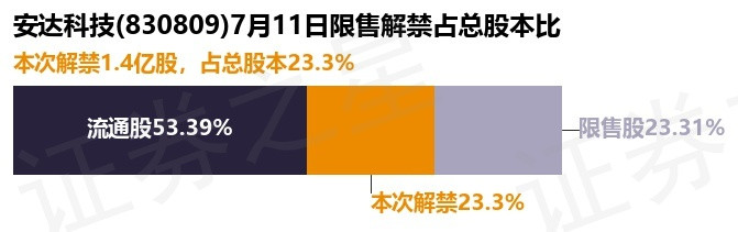 安达科技(830809)1.4亿股限售股将于7月11日解禁, 占总股本23.3%
